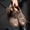 Sommer Low-Top Hollow Freizeitschuhe Herren Weiche und Zarte Erstschicht Rindslederschuhe Retro Schnür-Sportschuhe