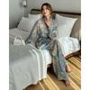 Bedruckt, Langärmlig, Zum Schnüren, Hemd, Hochtailliert, Weitbeinige Hose, Damenbekleidung, Zweiteiliges Set