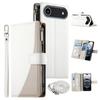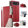 Für iPhone 17 Air Hülle Reißverschluss-Geldbörse Farbspaltung Leder Klapp-Handyhülle mit Riemen