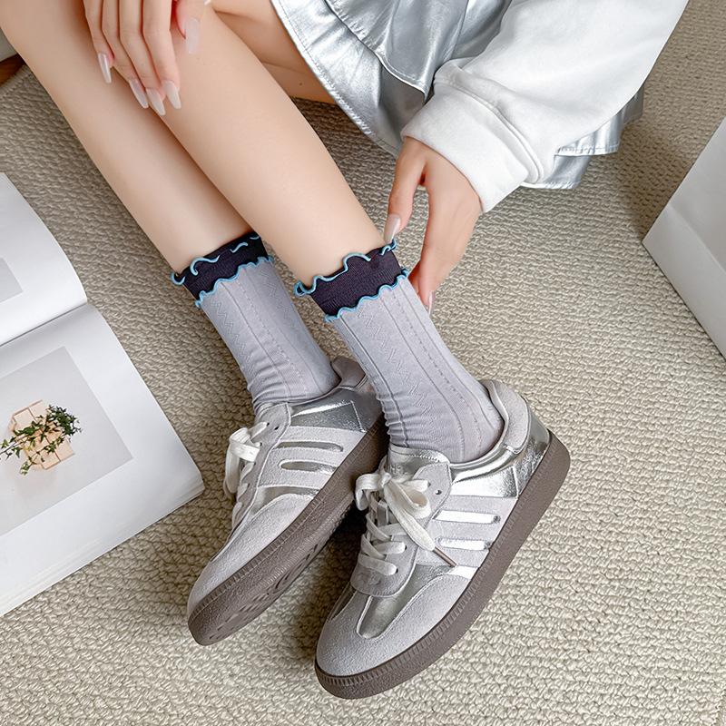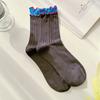 Color Blocked Spitze, Netzsocken, Damen, Mittelsohle, Neuer Stil, Ins Style, Atmungsaktiv, Japanisch, Doppelt gerippt, Kontrastierende lange Socken aus Baumwolle