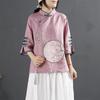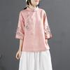 New cotton and linen shirt women's spring and summer stand-up collar button-up top diagonal placket embroidery