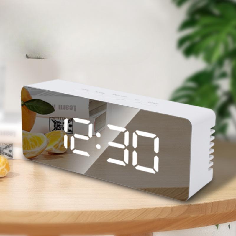 Multifunctional Mirror Clock LED Digital Mirror Clock Desktop Creative Makeup Mirror Alarm Clock Household Temperature Electronic Clock