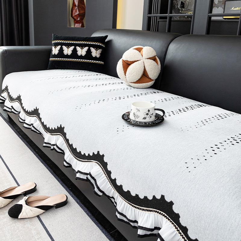 Light luxury high-end straight row sofa cushion black four-season universal non-slip 2025 new chenille cover sofa cushion