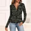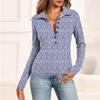 Damenmode Lässig Bedrucktes V-Ausschnitt Langarm Knopfleiste Oberteil