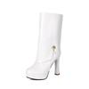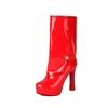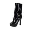 Übergröße Superhoher Hohlblockabsatz Glänzendes Lackleder Material Mittelhohe Stiefel Plateau Seitlicher Reißverschluss Herbst Neue Stiefel