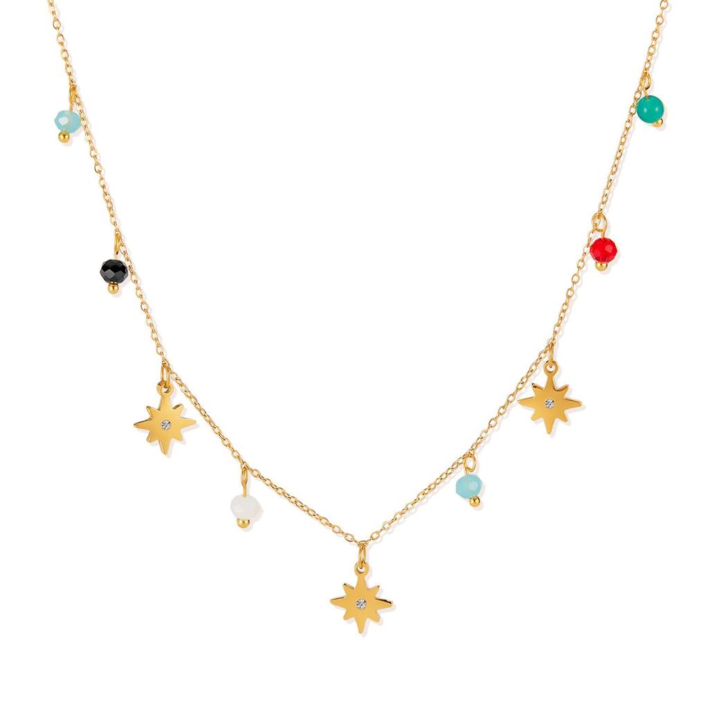 Necklace for Star Stainless Colorful with Christmas [Deelfel] Women, Charm, Gold, Steel, Beads, Zirconia, Adjustable, Gift, Birthday,