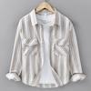 Japanisches Frisches Gestreiftes Langarmhemd Lässig Vielseitig Mode Literarisches Hemd Revers Oberteil