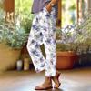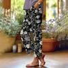 Damen Casual Mode Hosen mit Blumendruck Gerades Bein Hosen mit Taschen