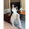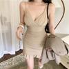 Wind Geburtstagskleid Rock Temperament V-Ausschnitt tiefer Ausschnitt Brust Trägerkleid Taille und dünn