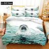 Seelöwe Bettbezug King Queen Größe Reizende Ozeantiere Bettwäscheset für Kinder Jungen Mädchen Blaues Meer Strand Polyester Steppdeckenbezug