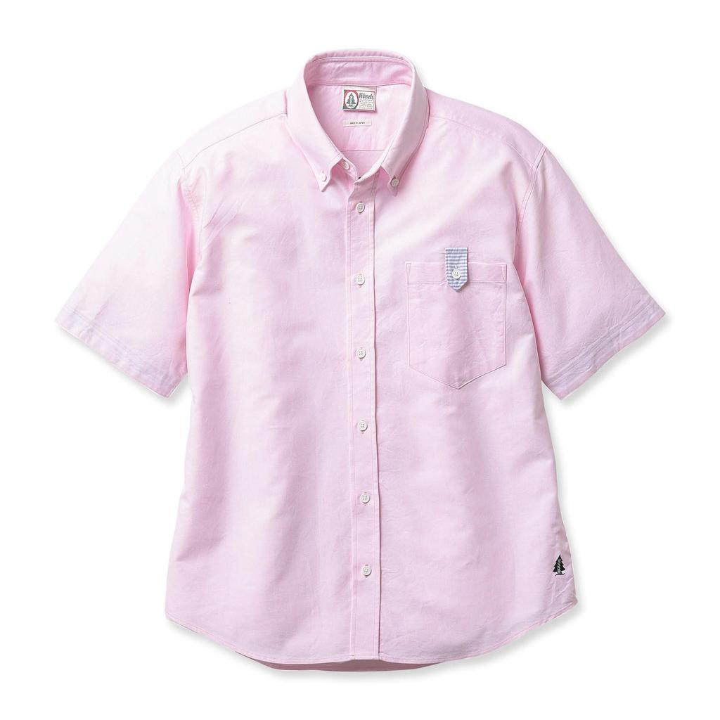 Oxfordhemd für Herren [WOODS] Kurzarm, hergestellt in Japan (XL, rosa)