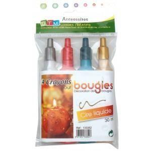 Wachsmalstifte für Kerzen - Flüssigwachs - 30 ml - Gold, Silber, Rot - Set mit 4 Stiften