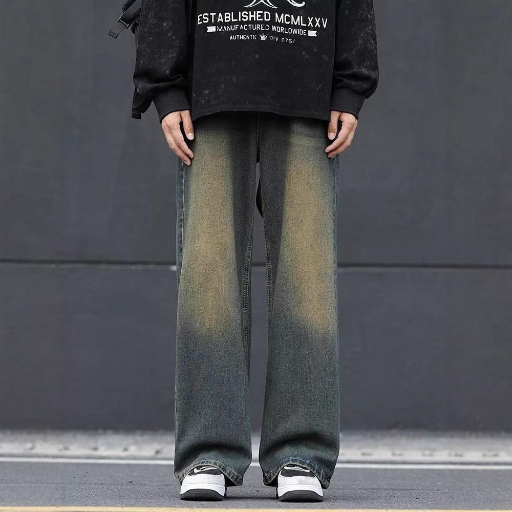 Frühlings- und Herbst Herren Locker Gerade Jeans Schwerer Sandwaschung Retro Lässige Jeanshosen Herren