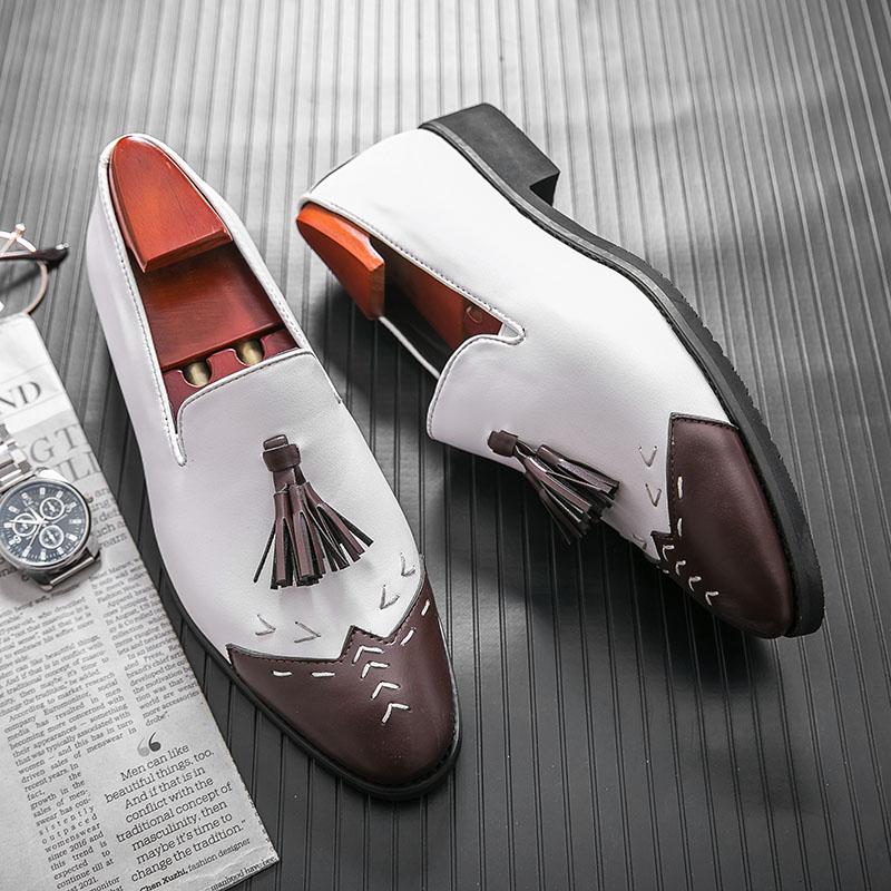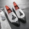 Retro Herren Schwarz Weiß Patchwork Quasten Lackleder Brogue Kleid Formell Spitz Business Oxford Schuhe Hochzeit Abschlussball Schuhe