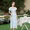 Dress women's new summer temperament, waist and thin design, beautiful and unique bubble sleeve skirt