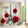 Rote Rose Blume Duschvorhang Romantisches Paris Vintage Eiffelturm Stempel Floral Schmetterling Abstrakte Kunst Badezimmerdeko mit Haken