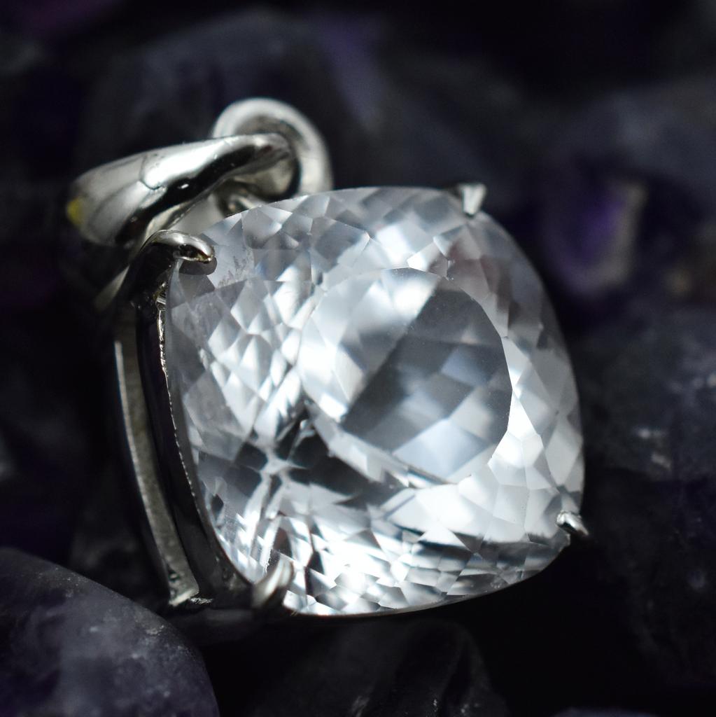 30 Karat Silber Weiß Anhänger Quadratischer Kissen Schliff Natürlicher Saphir Edelstein ZERTIFIZIERT AR-3634-Sa