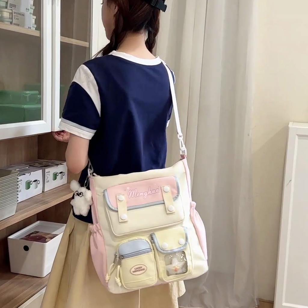 Colorblock Umhängetasche Damen College-Stil Schultertasche Junior High School Schülerinnen Große Kapazität Tragetasche