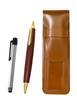A set of a Japanese-made cowhide pen case, a Japanese-made smartphone stylus pen, and a wooden ballpoint pen.