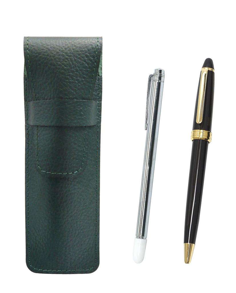 Moss green grained leather pen case with metal pointer and Neo ballpoint pen set D-600 (black) SASMG-701S-600B-B