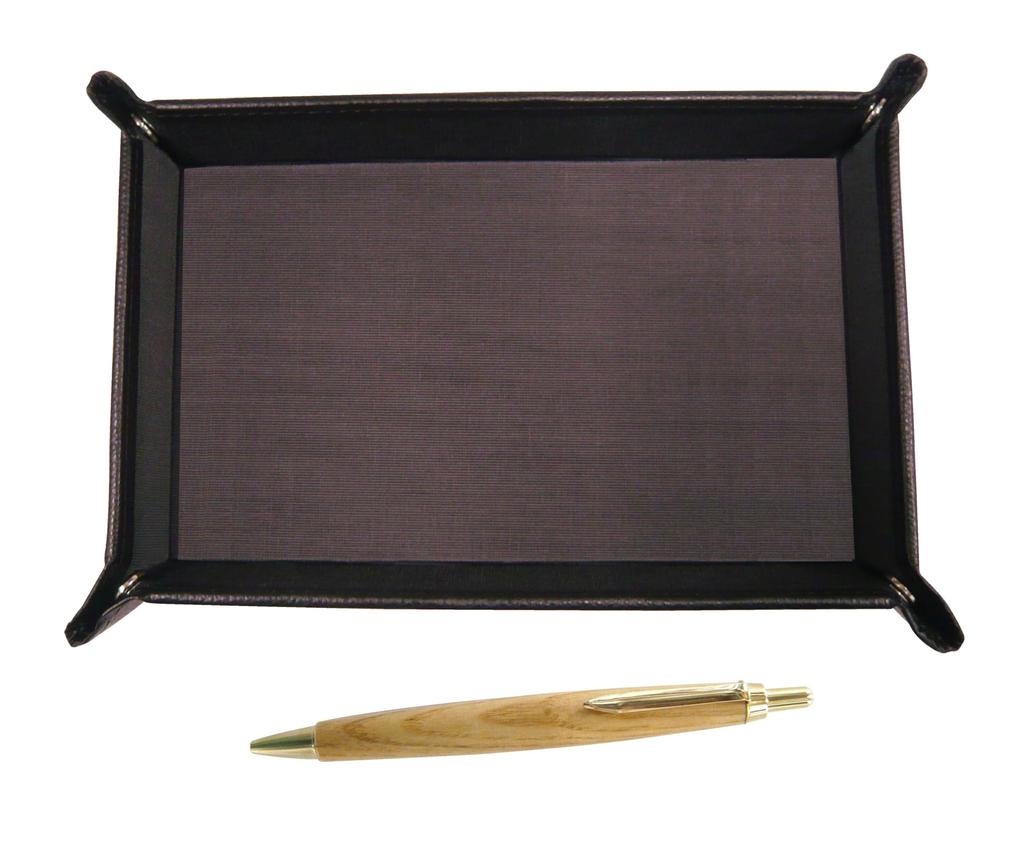 leather pen tray and retro maple ballpoint pen set Chocolate-colored TRATYO-HS47S