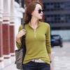 Spring And Autumn New Style Zippered Long Sleeve T-Shirt Women's Korean Style Slim Fit Casual Bottoming Shirt Top