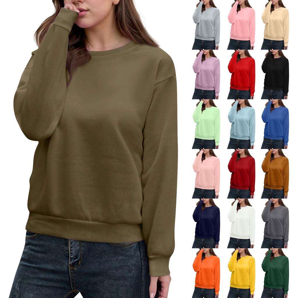 Damen Casual Fashion Top Einfarbig Rundhals Langarm Pullover Top