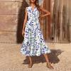 Lässiges und modisches ärmelloses Kleid mit V-Ausschnitt und mittellanger Bedruckung für Damen