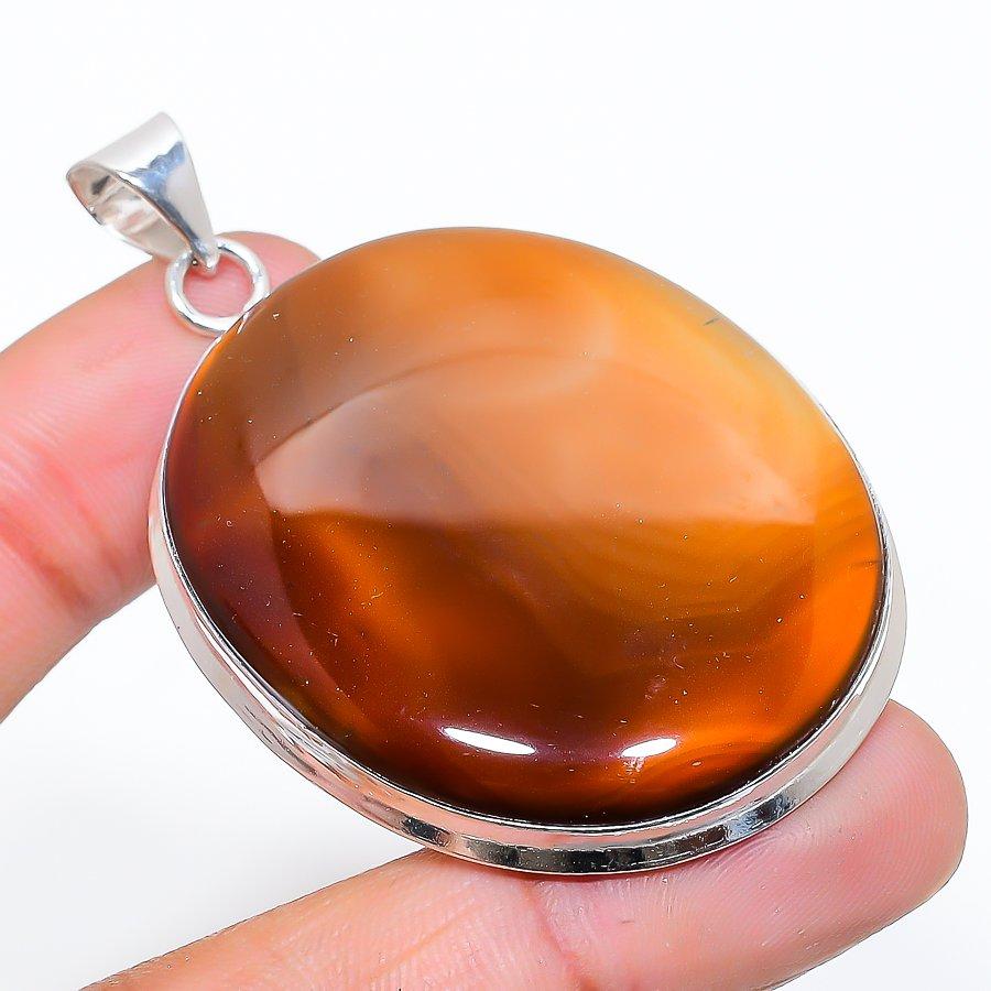 Indian Moss Agate Gemstone 925 Sterling Silver Jewelry Pendant 2.36" SU-10907