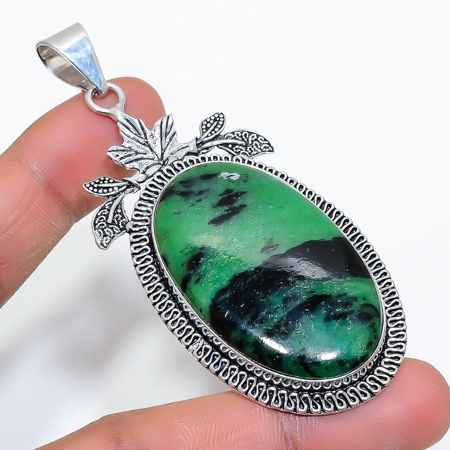 Rubin Zoisit Edelstein Handgefertigt 925 Sterling Silber Schmuck Anhänger 3.19" SU-9983