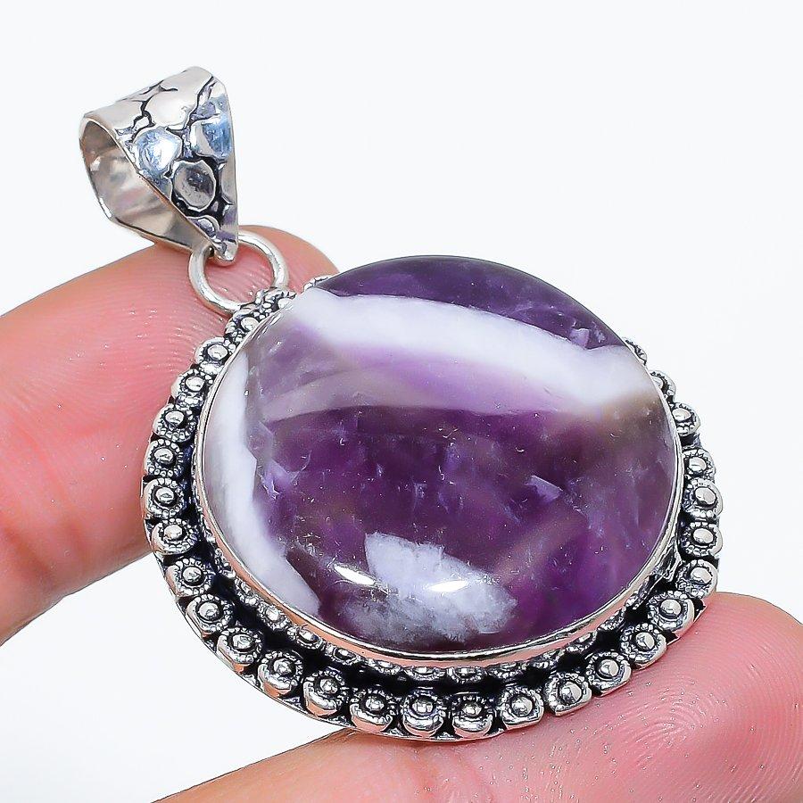 Chevron Amethyst Gemstone 925 Sterling Silver Jewelry Pendant 1.89" SU-10735