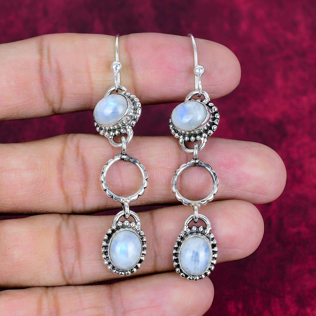 Mondstein 925 Massiv Sterlingsilber Ohrringe, Handgefertigter Edelstein Ohrschmuck, Geschenke für Ehefrau Brandneue Ohrringe