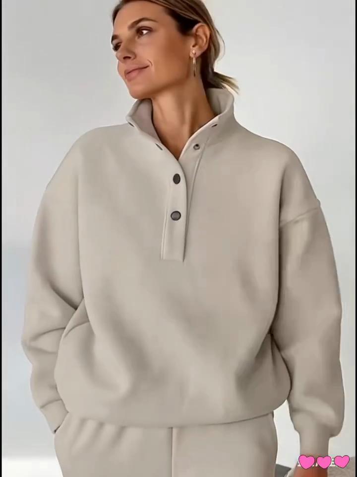 Frühlings- und Herbst-Damenmode, modische Kapuzenpullover mit Knopfleiste und Kragen, lockeres Hosen-Set