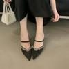 Half-tow high heels autumn rhinestone thin heel champagne one-word with pointed toes and high-heeled slippers