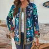 Damen Vintage Ethno-Stil Blumendruck Langarm Plus Size Baumwolljacke Mantel