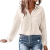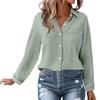 Damen Casual Mode Locker Langarm Stehkragen Einfarbig Leinenhemd