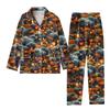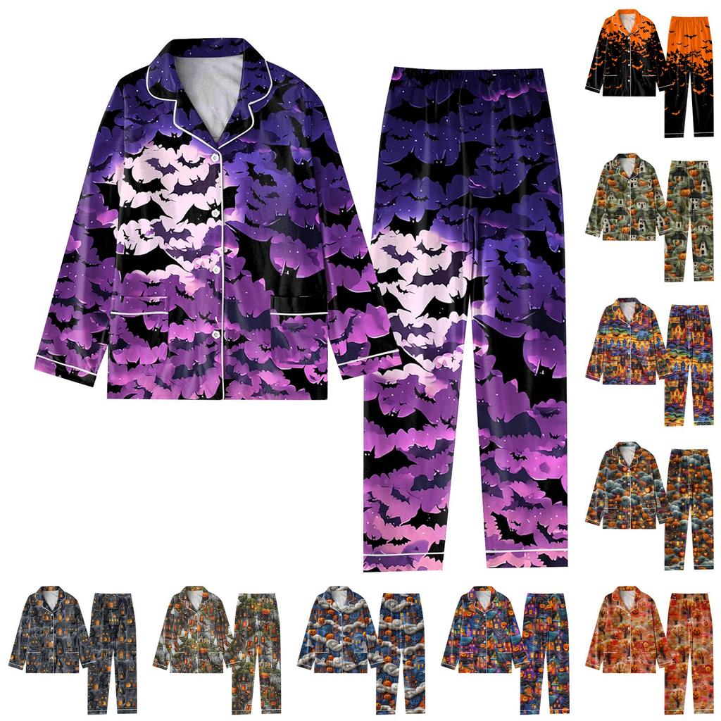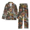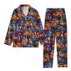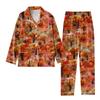 2-teiliger bedruckter Damen-Anzug, langärmelig, Oberteil mit Knopfleiste, weite Hosen, Anzug-Set, Schlafanzug, Home-Casual-Anzug
