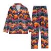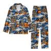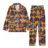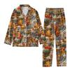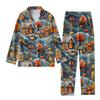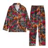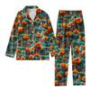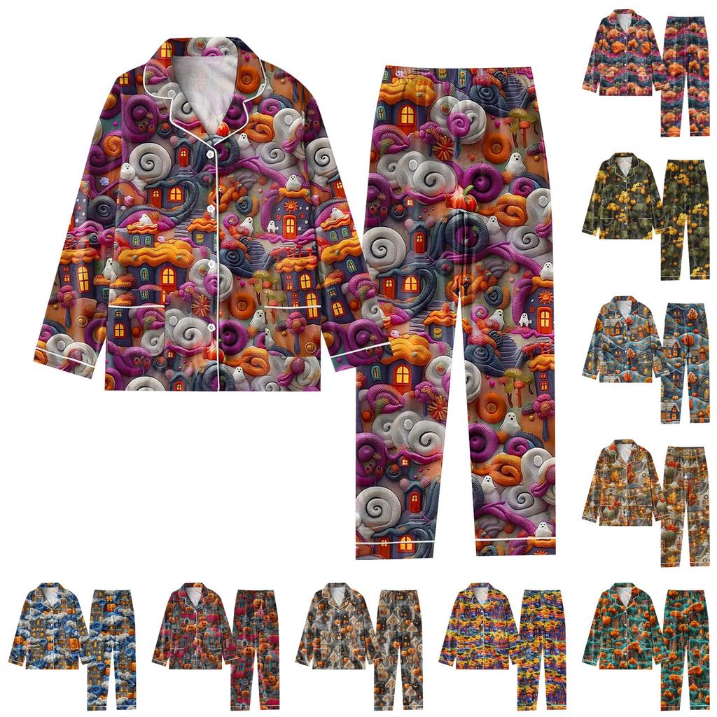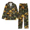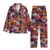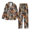 2-teiliger bedruckter Damen-Anzug, langärmelig, Oberteil mit Knopfleiste, weite Hosen, Anzug-Set, Schlafanzug, Home-Casual-Anzug