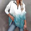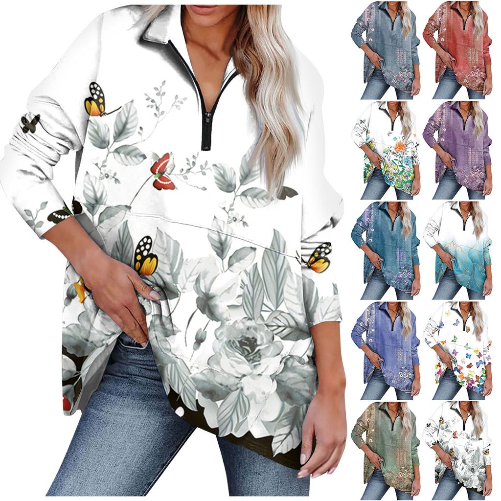 Damen Lässiges Übergroßes Sportshirt mit Halbreißverschluss Langärmlig Bedruckt mit Tasche Pullover-Top
