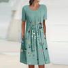 Damen Sommer Casual Fashion Rundhals Kurzarm Print Pullover Loses Kleid
