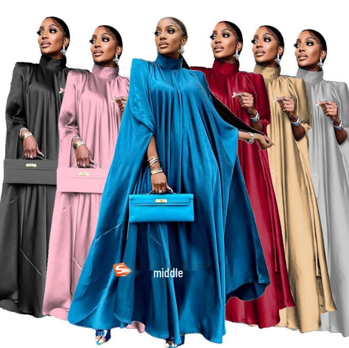 2023 Damen Stehkragen Weites Satin Swingkleid - Europäischer, Amerikanischer und Südostasiatischer Stil