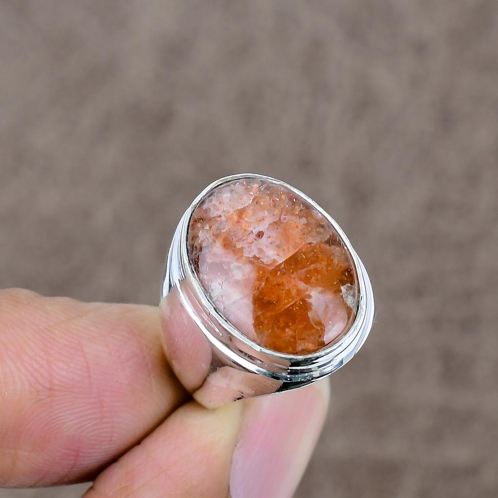 Sunstone Genstone Handmade 925 Sterling Silver Jewelry Ring Size 7 KKG-515