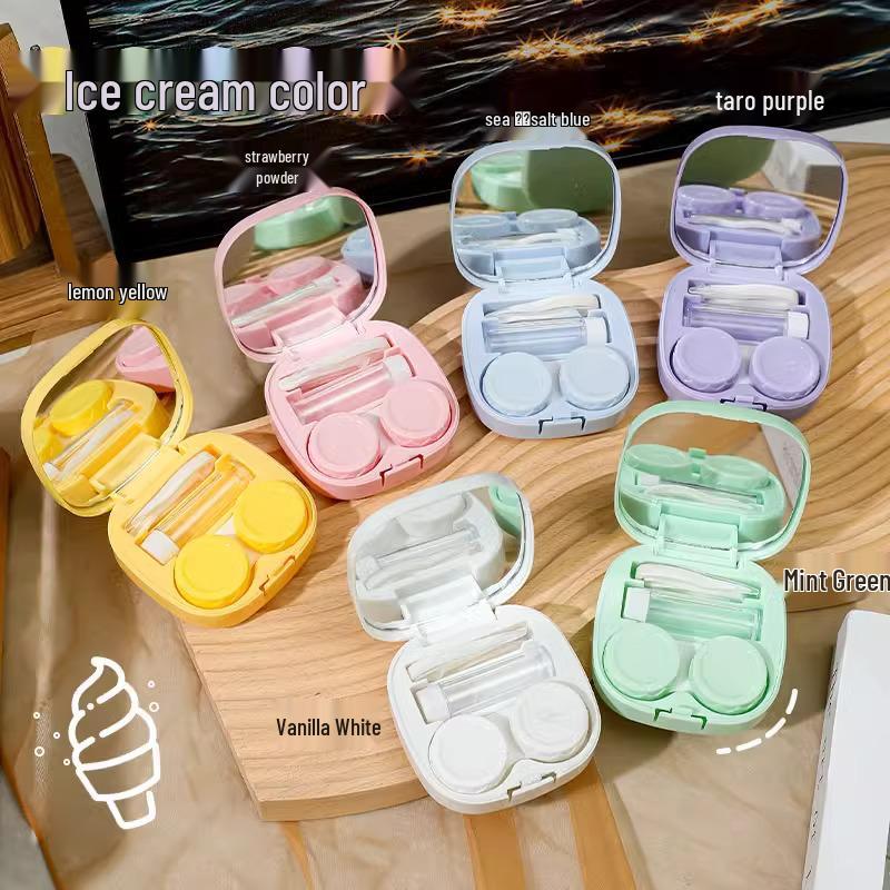 Tragbarer Macaron Kontaktlinsenbehälter mit Spiegel – Kompakt und stilvoll für Studentinnen