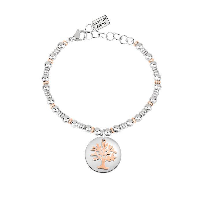 Armband aus zweifarbigem Stahl und Kristall LA PETITE STORY - Lebensbaum