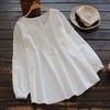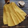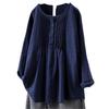Experience comfort and style with this women's long-sleeve shirt, crafted from a breathable cotton and linen blend. Its loose fit ensures a relaxed wear, making it perfect for casual outings or laid-back days at home. The round neckline adds a touch of elegance, while the solid pattern offers a timeless appeal. Enhanced with patchwork and quilted decorations, this shirt combines classic design with unique detailing, perfect for those who appreciate subtle sophistication in their wardrobe.