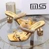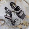 34-43 Große Elegante Baotou Sandalen für Damen 41 Neu Hinten Leer Hohe Absätze 42 Kleine Flache Mund Ein Knopf Einzelne Schuhe