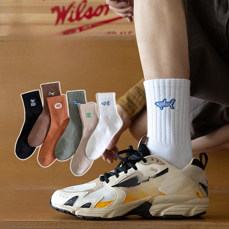 Herren Herbst- und Wintersocken: Deodorierend, Schweißabsorbierend, Einfarbige Baumwollsocken, Bestickt, Warm, Sportliche Wadenlange Socken, Lange Socken