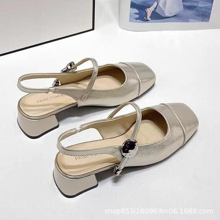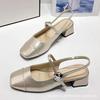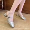 Französisches Temperament quadratischer Kopf Mary Jane Sandalen 2025 Sommer neu schlicht dicker Absatz Ein-Wort-Schnalle Tasche Kopf Sandalen Damen
