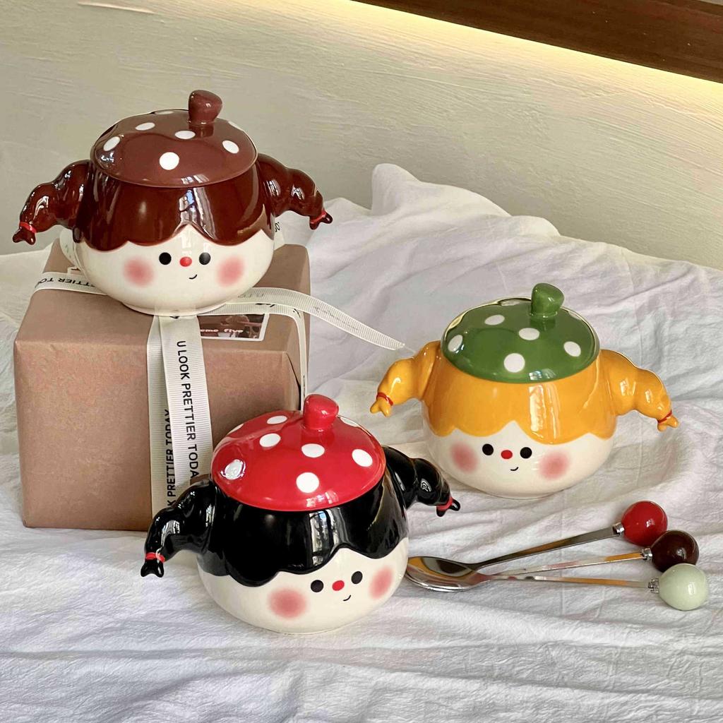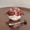 Hochwertiger geflochtener süßer Keramiktasse für kleine Mädchen mit Deckel Löffel Paar Frühstück Kaffeetasse Büro Wasserbecher