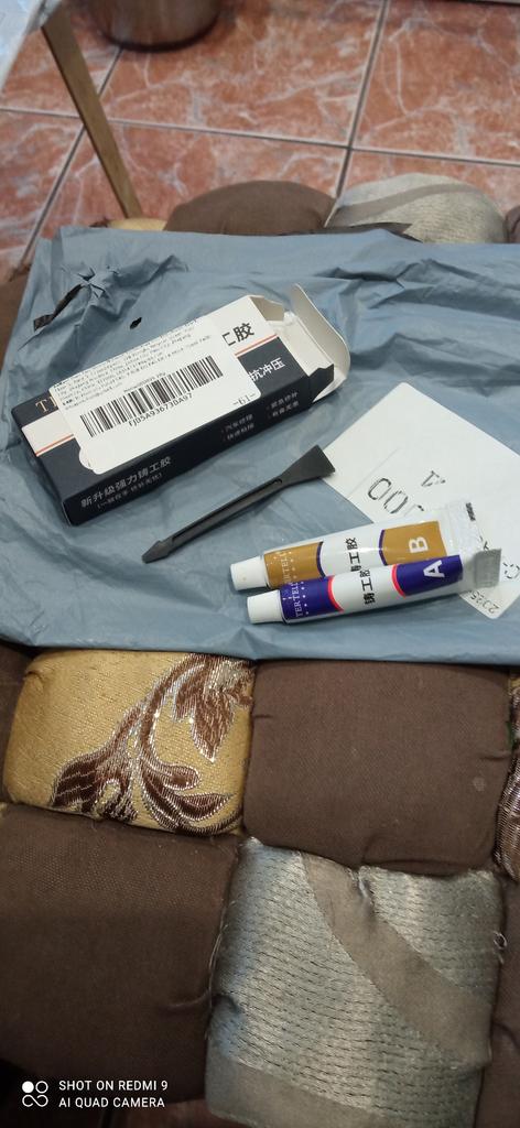 Tube A öffnete sich und ließ sich gut ausdrücken, aber Tube B schnitt den Kopf ab, drückte mit aller Kraft, drückte mit Zangen, was dazu führte, dass er am Behälter, in dem der Klebstoff gemischt wurde, vorbei schoss.